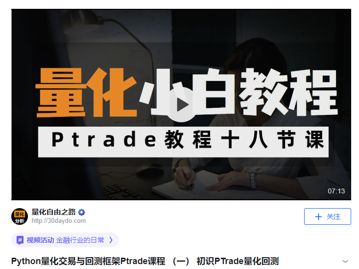 之前上传到知乎的Ptrade视频教程,共有18个短视频,配合本API文档观看,效果更佳
